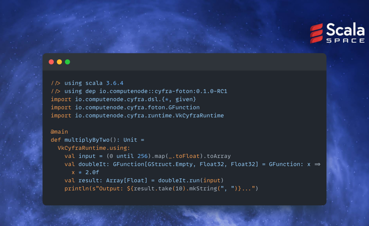 If you ever wanted to easily program on GPU with Scala in a functional way, your wait is over! Read more about on https://cyfra.computenode.io/