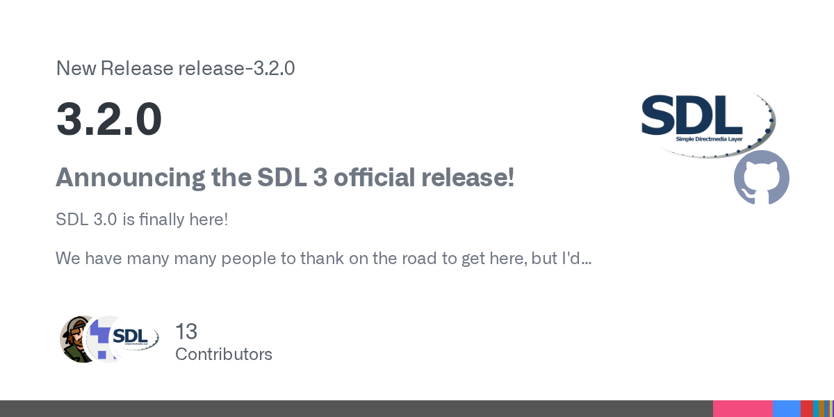 SDL3 is officially released! https://github.com/libsdl-org/SDL/releases/tag/release-3.2.0