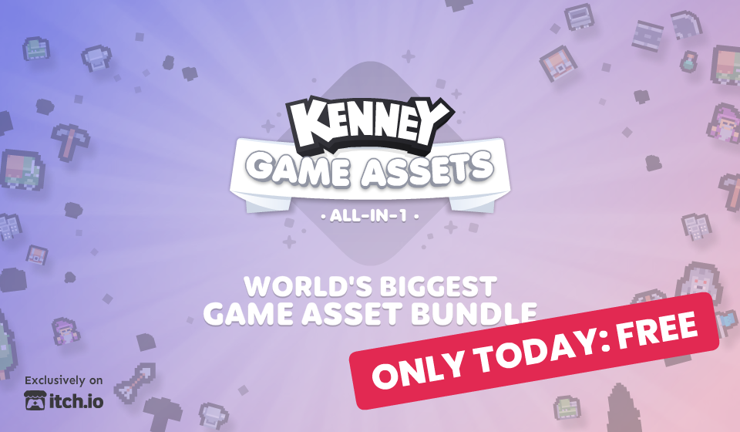 LETSSS GOOOO; Kenney Game Assets All-in-1 is FREE today, instead of the usual $19.95. Get all my game assets in a single bundle, great for learning new engines 👀