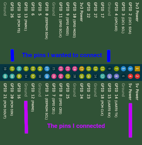 This connected the ground to another ground (the Raspberry Pi has a bunch of those) but the output pin was connected to the 5V output.